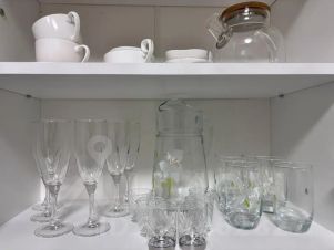 для готовки: полностью оборудованная кухня: плита, микроволновка, чайник, вся посуда.