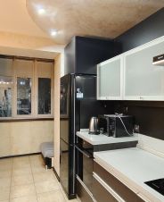 Квартира с дизайнерским ремонтом: всё выполнено с учётом современных тенденций. В кухне и комнатах есть вся необходимая мебель. В квартире установлена современная техника: кондиционер, холодильник, посудомоечная и стиральная машины, духовой шкаф, варочная панель, чайник, вытяжка, а также телевизор. Санузел совмещённый, с ванной. лоджия совмещена с кухней что делает ее просторнее, на лоджии установлен теплый пол. В комнате большая гардеробная.
