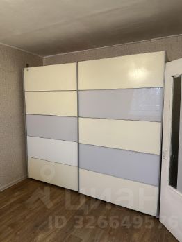 В комнате стоит раскладывающийся диван и большой шкаф-купе.