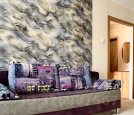 Полностью обставлена: Вам не нужно ничего докупать. В квартире есть диван, стиральная машинка (исправная, отлично справляется со своими задачами), новый телевизор, холодильник и пылесос.