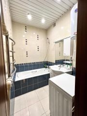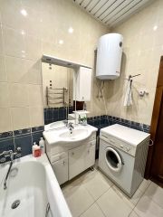 В квартире имеется все необходимое для проживания. Импортная мебель, наличие бытовой техники (стиральная машина, бойлер воды для нагревания, микроволновка, кофемашина, эл. Чайник, кухонный комбайн, холодильник, духовка, кондиционер, 3 телевизора). Комнаты изолированные с отличной шумоизоляцией и видом из окон. 2 раздельных санузла. Пластиковые окна, застекленная лоджия. Закрытый двор. Во дворе современная детская площадка. Квартира укомплектована посудой и постельным бельем.