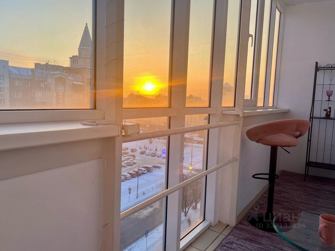 В площадь квартиры входит лоджия 6 метров в длину, которая совмещает в себе комнату для отдыха и полноценную терассу в теплое время года. Справа видны закаты, а слева рассветы, со стороны парка(см. фото) Окна выходят на южную сторону, в квартире много света.