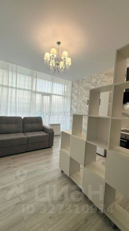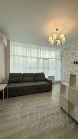 Студия с современным ремонтом и панорамными окнами. Просторная кухня оборудована всем необходимым: холодильник, плита, электрочайник, вытяжка и встроенная мебель. В комнате установлен кондиционер и телевизор. Места хранения-вместительный шкаф-купе и стеллаж.