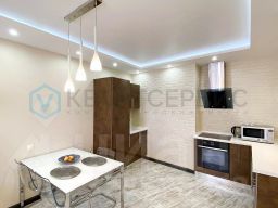 Планировка: прихожая со шкафом купе, кухня гостиная со встроенным кухонным гарнитуром и бытовой техникой- холодильник, посудомоечная машина, варочная поверхность, детская спальня с вместительной гардеробной, просторная спальня родителей. Раздельный санузел. Стиральная машина.