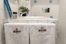 "Жуков Отель" - бутик-отель с нестандартным и тематическим интерьером. Основная идея - это претензия на эксклюзивность, уникальность. Персонал отеля круглосуточно готов предоставить изысканное, персональное обслуживание каждому гостю. Теплая, дружеская атмосфера заставляет возвращаться сюда снова и снова. "Жуков Отель" является идеальным выбором для визита в наш город, благодаря своему престижному расположению. Отель выгодно размещен в центре с легким доступом ко всем местам города, которое позволит гостям пешком или на транспорте добраться до любых главных зданий Омска, бизнес центров, знаменитых торговых районов досуга и развлечений. В пешей доступности расположен спортивный комплекс СКК им. Блинова, новый концертный зал, парк Юннатов, Иртышская набережная, банки, магазины. Эксклюзивный бутик отель предлагает бесплатную парковку, бесплатный Wi-Fi, отличный ресторан, насладиться наивкуснейшим континентальным завтраком и с комфортом поработать с бесплатным ароматным кофе или чаем с шоколадками в любое время.