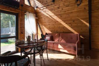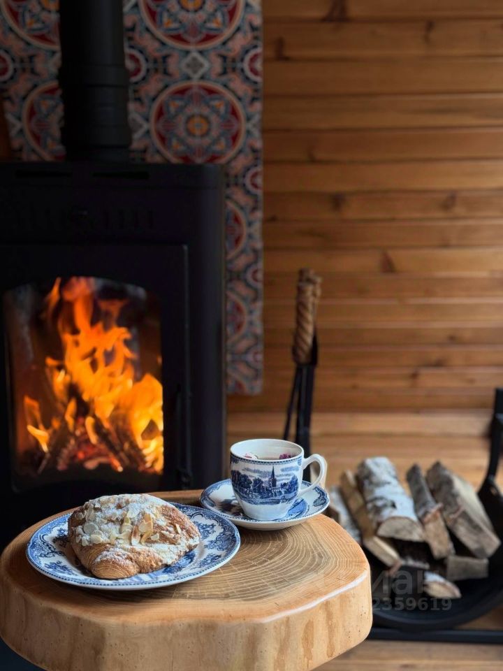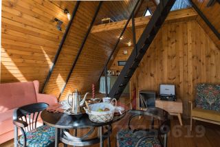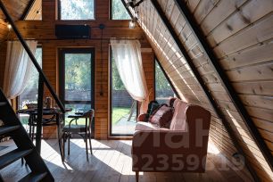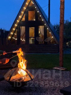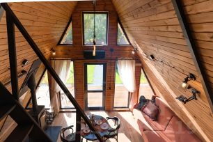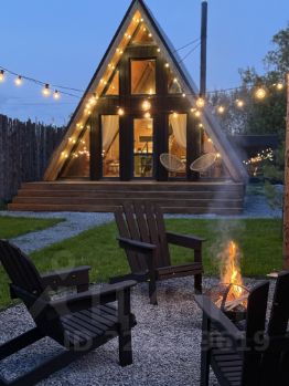 Уютный A-фрейм дом с камином.