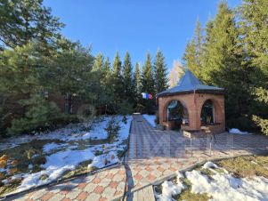 Расположен дом на участке, площадью 18 соток. Земля оформлена в собственность. Придомовая территория выложена тротуарной плиткой. Имеются кирпичные капитальные хозпостройки: баня, гараж, хозблок. Также имеется огород, небольшой пруд и аллеи оформленные хвойными деревьями. Территория огорожена высоким забором.