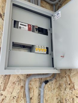 Свет: 220 можно провести 380, стоит дежурные 3 лампы диодные, 9 ламп больших диодных, 4 розетки по периметру, вся проводка, шкаф металлический, автоматы новые установлены в июле