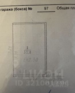 Площадь гаража 33,8 кВ м. Внутренний обмер: 7,38 на 4,58.