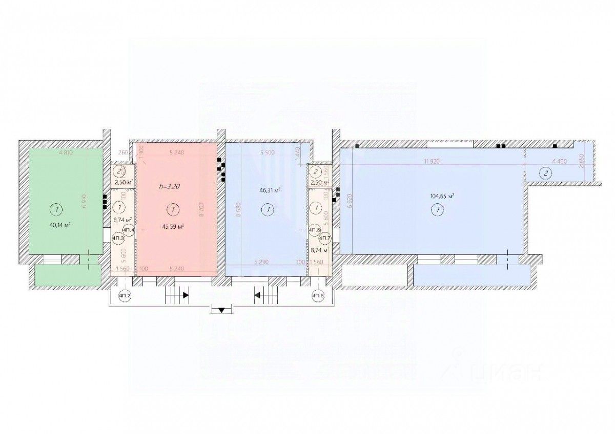 Компания "Новая Локация" предлагает продажу помещения свободного назначения площадью 46.3 м²
