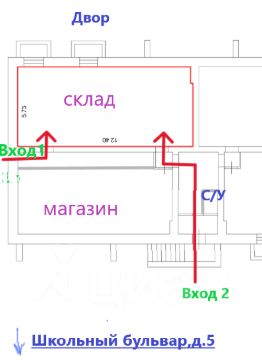 Самое лучшее место микрорайона. Центральная улица микрорайона. Рядом детский сад. Высокий пешеходный и автомобильный трафик. Напротив уже работают магазины и сервисы. Выход напротив дома Бульвар Школьный 5. Ранее помещение использовалось под склад для смежного продуктового магазина.