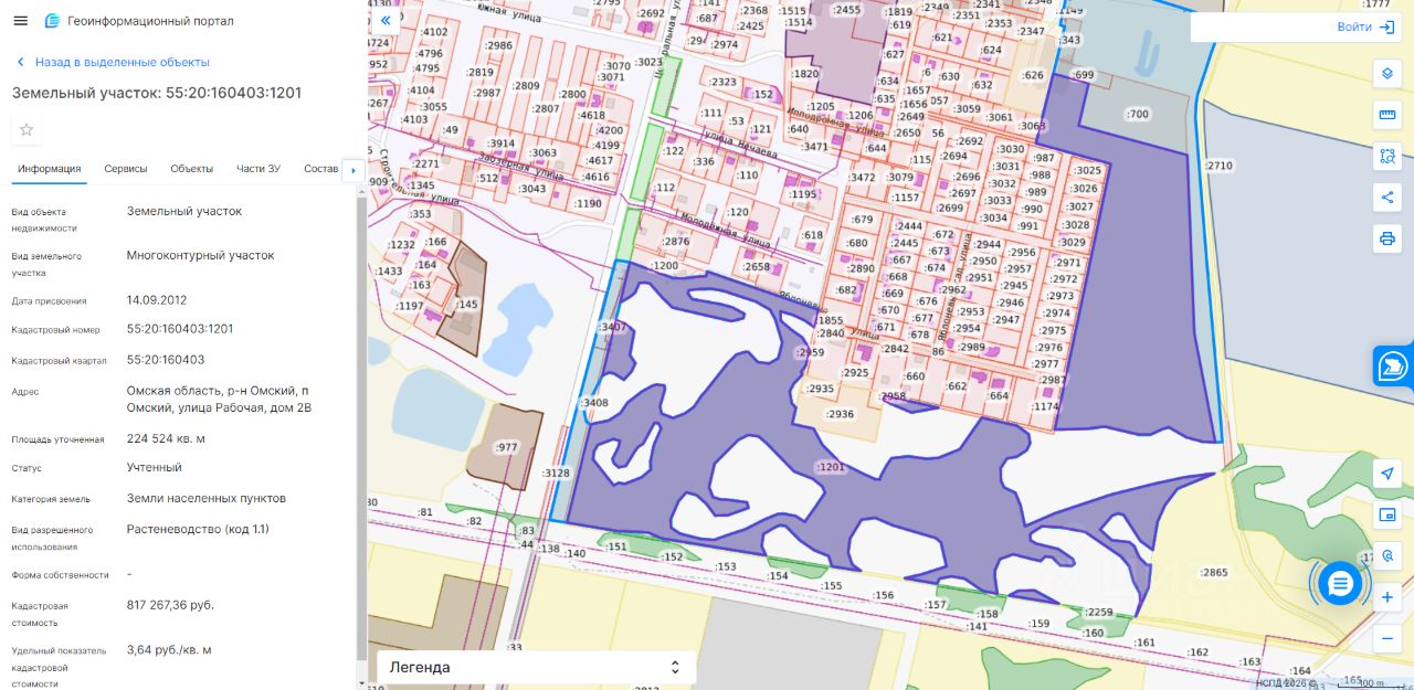 земельный участок, государственная собственность на который не разграничена, с кадастровым номером 55:20:160403:1201, площадью 224524 кв. м., из категории земель населенных пунктов, территориальная зона - Зоны сельскохозяйственного использования (СХ-7), с видом разрешенного использования — растениеводство, расположенного в границах Омского сельского поселения Омского муниципального района Омской области, местоположение которого: установлено относительно ориентира, расположенного за пределами участка. Ориентир нежилое строение. Участок находится примерно в 570 м, по направлению на юг от ориентира. Почтовый адрес ориентира: Омская область, р-н Омский, п Омский, улица Рабочая, дом 2В