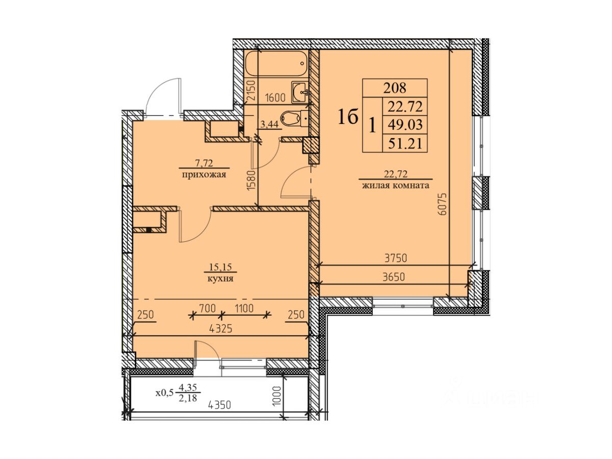 Высота потолков 2,72 м.