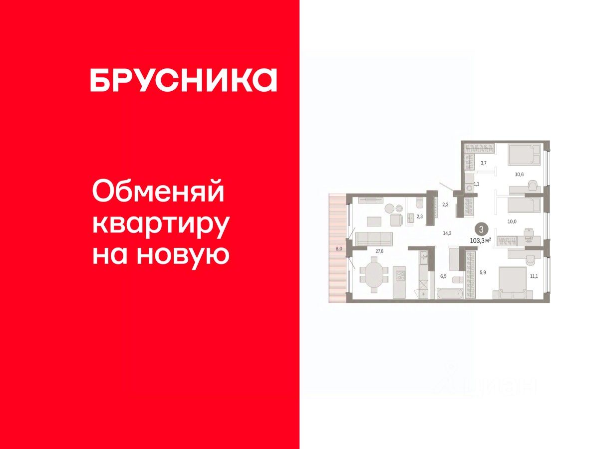 Купить трехкомнатную квартиру можно с помощью программ покупки от застройщика Брусника: