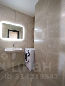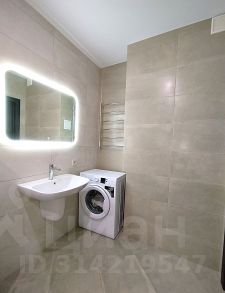 Вместительная ванная комната обустроена таким образом, что здесь достаточно места для всего необходимого, включая стиральную машину.