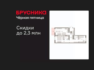 Квартира с кухней-гостиной и двумя спальнями в Кварталах Драверта. Особенности планировки: окна на две стороны, вид во двор, разнесённые спальни, предчистовая отделка, мастер-спальня, балкон.