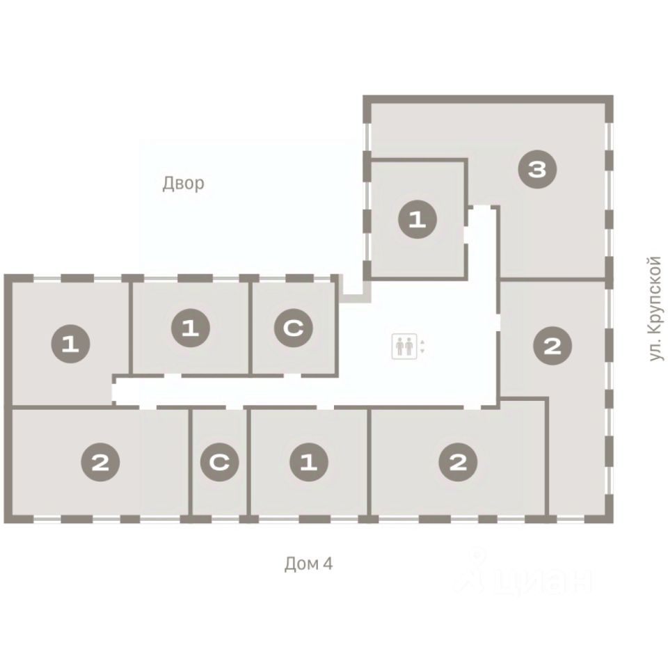 Квартира с кухней-гостиной и тремя спальнями в Кварталах Драверта. Особенности планировки: окна на две стороны, гардеробная, вид во двор, разнесённые спальни, предчистовая отделка, мастер-спальня, балкон.