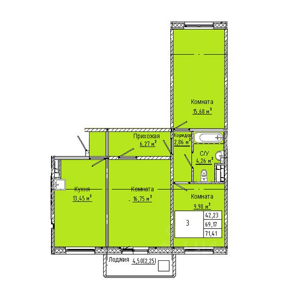 71,41 м²