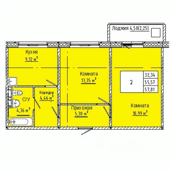 Общая площадь57,81 м²