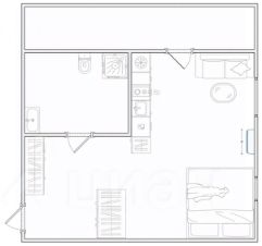 -Кухня-гостиная и отдельное большое спальное место.