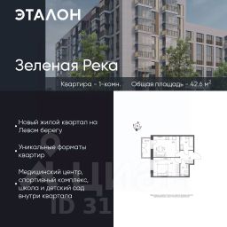Продается квартира 35, по адресу г. Омск, ул. Волгоградская, корпус Зеленая Река, 1 очередь, корпус 13 в Зеленая Река на 5 этаже, с площадью 42.6 м2.