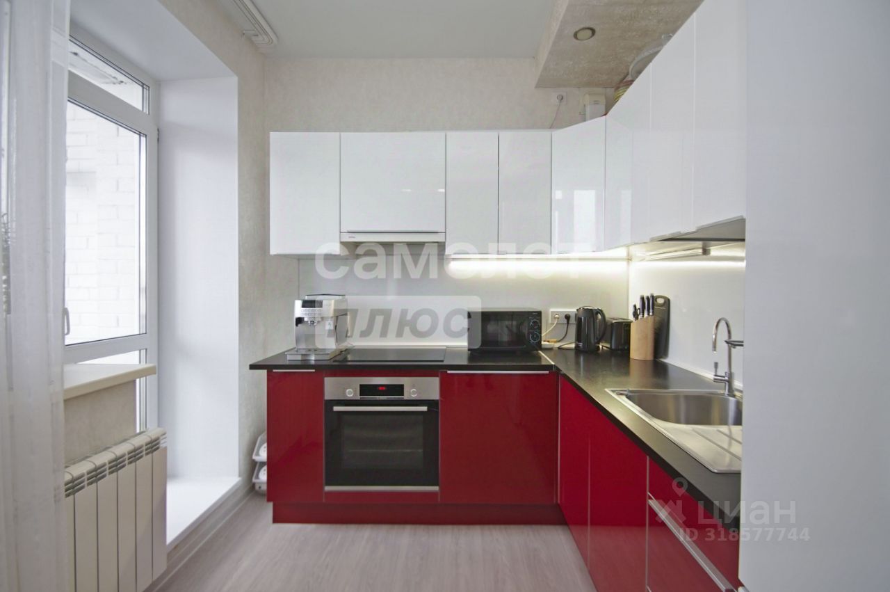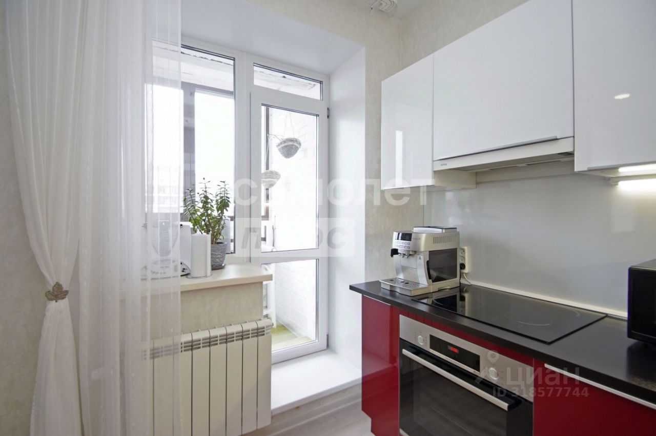 просторная кухня-гостиная 18 квадратных метров с выходом на балкон с встроенным кухонным гарнитуром оборудованным всей бытовой техникой