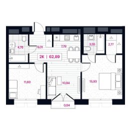 Продаётся 2-комнатная квартира в строящемся доме (Дом 77), срок сдачи: III-кв. 2026, общей площадью 62.89 кв.м., на 12 этаже. Новый жилой комплекс "Пушкина 77" от компании "newton" расположен в Центральном округе Омска по адресу: ул. Пушкина, 77.