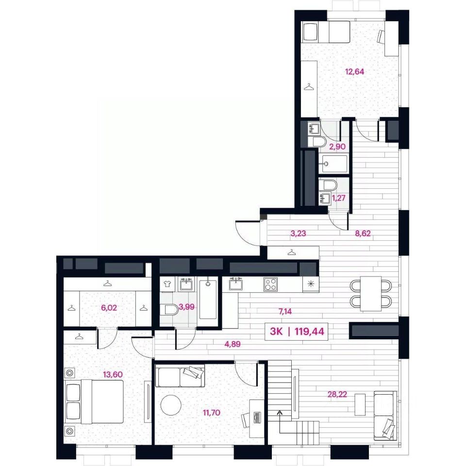 119,44 м²