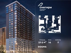 В продаже 2-комнатная квартира от застройщика DOGMA! ЖК "Снегири", г. Омск, Литер 1 Срок сдачи: (4 кв. 2027, общей площадью 52.9 кв.м., на 14 этаже.) Район для счастливой жизни