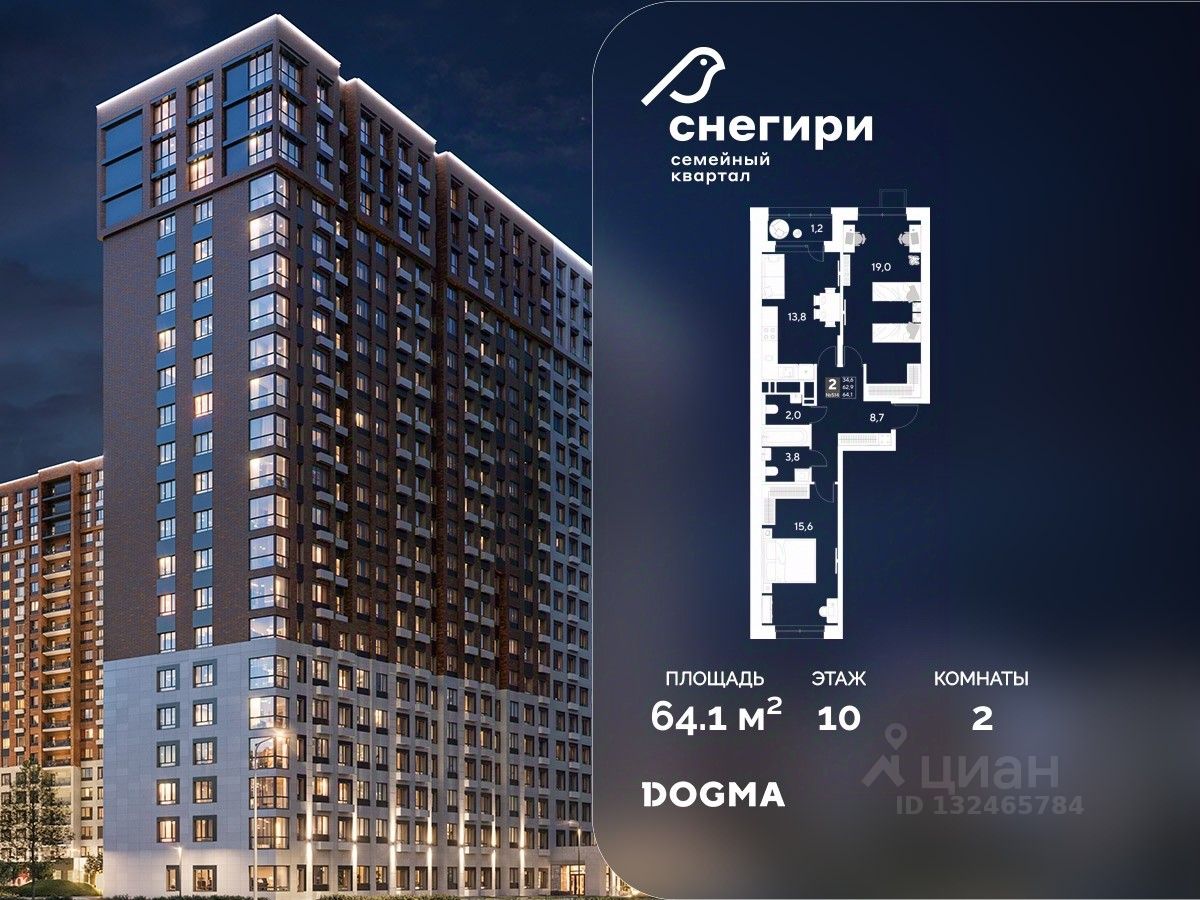 В продаже 2-комнатная квартира от застройщика DOGMA! ЖК "Снегири", г. Омск, Литер 1 Срок сдачи: (4 кв. 2027, общей площадью 64.1 кв.м., на 10 этаже.) Район для счастливой жизни