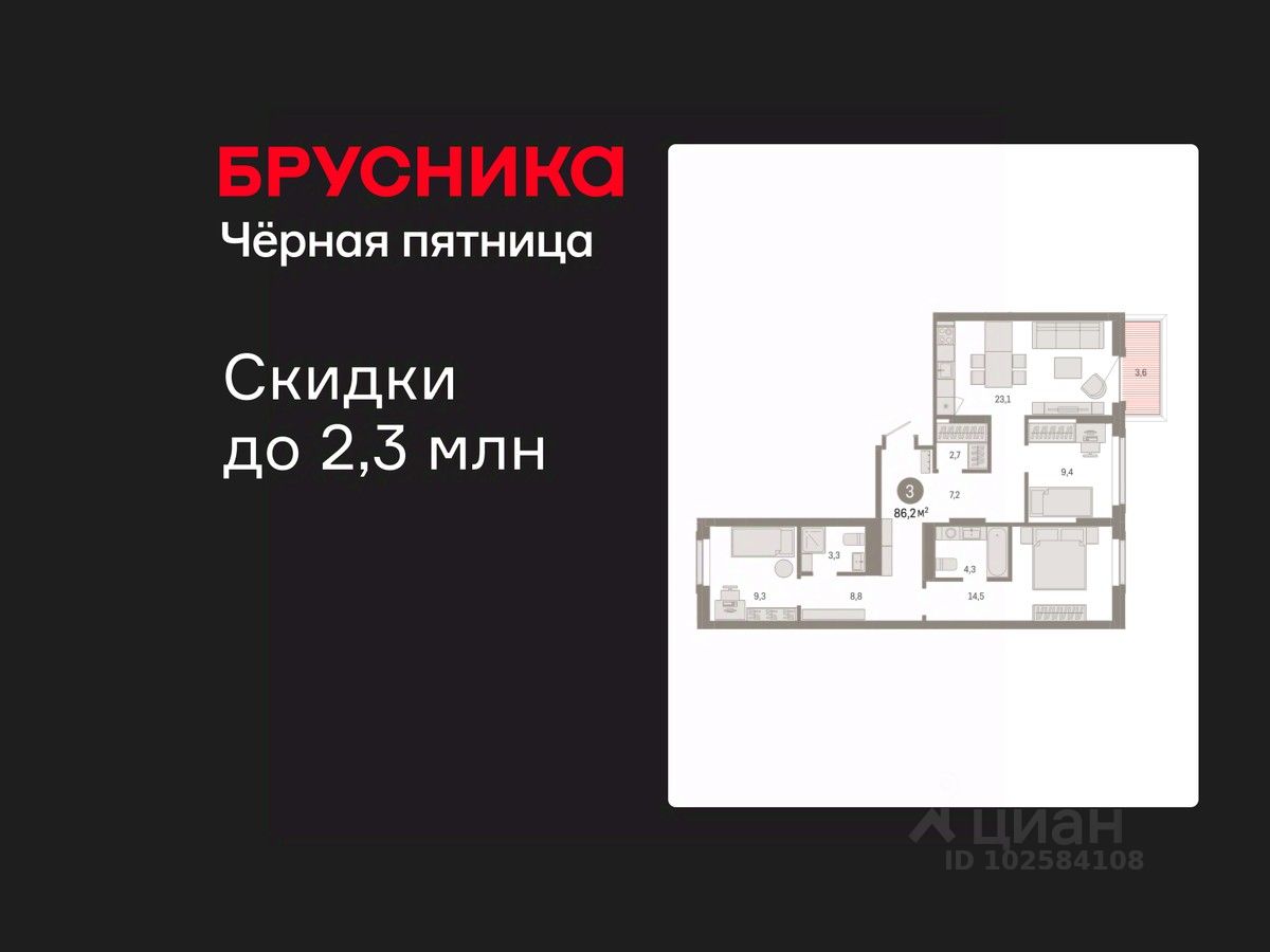 Трехкомнатная квартира от застройщика с предчистовой отделкой в Кварталы Драверта на 2 этаже. Общая площадь: 86.17 кв.м., жилая: 33.2 кв.м., площадь просторной кухни-гостиной: 23.1 кв.м. Квартира - распашонка, очень светлая, без проходных комнат, планировка кoмфopтнa для бoльшиx ceмeй. В квартире один балкон, два совмещенных санузла. Высота потолков 2.7 м.