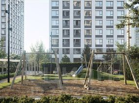 Во дворе нет машин. Это приватное пространство, попасть в которое могут только жители. Здесь спроектированы: променад, лаунжи с садовой мебелью, где, развалившись на шезлонге, можно почитать или поработать, и детские площадки.