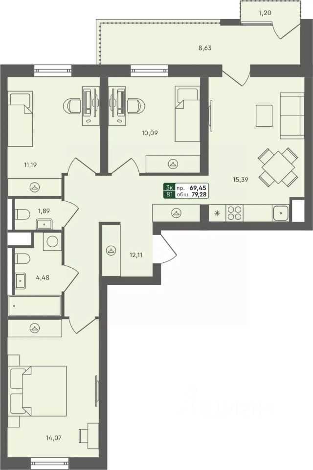Общая площадь79,28 м²