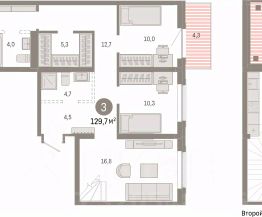 3-комн. квартира от застройщика с предчистовой отделкой в Кварталы Драверта на 7 этаже. Общая площадь: 129.72 кв.м. Высота потолков 2.7 м.