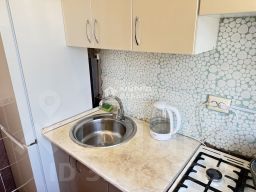 В кухне смонтирован кухонный гарнитур.
