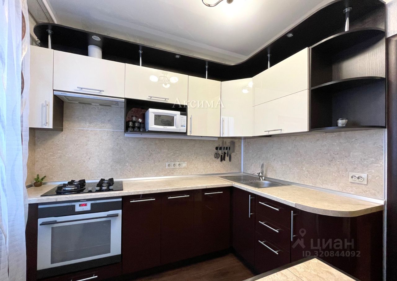 Новым хозяевам останется кухонный гарнитур со встроенной бытовой техникой, встроенный шкаф-купе и диван в зале, кондиционер.