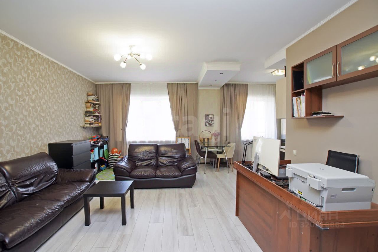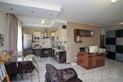 Сделана перепланировка (узаконена). Лоджия утеплена и является продолжением комнаты, получился рабочий кабинет. Огромная кухня- гостиная. Есть гардеробная.