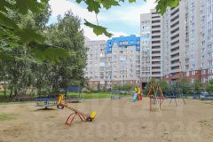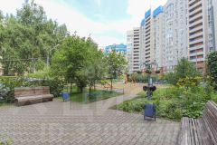 Большой благоустроенный двор с березовой рощей, новыми детскими и спортивными площадками, уютными скамейками, а также с отведенными местами для стоянки машин.