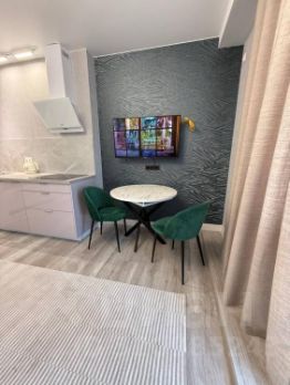 Особое внимание уделено освещению, которое грамотно подчеркивает достоинства каждой комнаты. Просторная кухня-гостиная станет любимым местом для семейных вечеров и встреч с друзьями. Здесь установлен стильный встроенный кухонный гарнитур, укомплектованный современной техникой. В спальне вас ждет большая двуспальная кровать, а детская комната оборудована всем необходимым для комфортной жизни ребенка: удобное спальное место, функциональное рабочее пространство и вместительный шкаф.