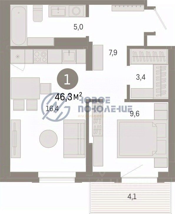 Компания недвижимости "НОВОЕ ПОКОЛЕНИЕ" предлагает к продаже однокомнатную квартиру в ЖК "Кварталы Драверта".