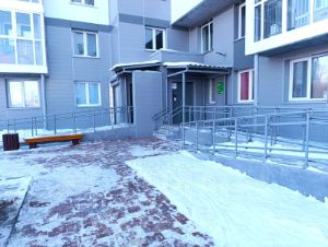 Аккуратный подъезд с большим пассажирско-грузовым лифтом, видеодомофон, пандус при входе в подъезд. Облагороженная придомовая территория - зоны отдыха, детская площадка. вместительная парковка внутри и снаружи дома.