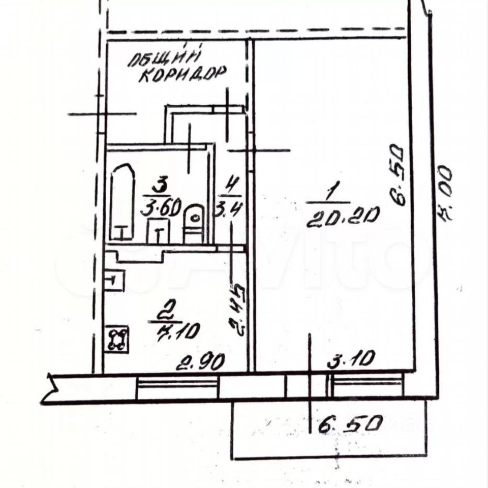 Общая площадь — 34 кв. м, жилая площадь — 20.2 кв. м, площадь кухни — 7.1 кв. м. Светлый и просторный балкон — 6,5 кв. м.