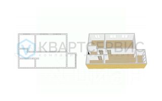 Планировка квартиры включает в себя: просторную кухню-гостиную, две спальни, совмещенный санузел.