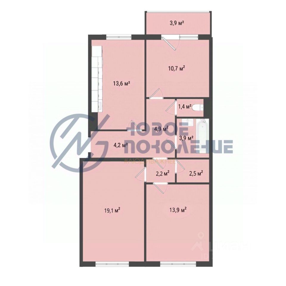 Компания недвижимости "НОВОЕ ПОКОЛЕНИЕ" предлагает к продаже трехкомнатную квартиру в сданном доме.