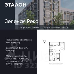 Продается квартира 244, по адресу г. Омск, ул. Волгоградская, корпус Зеленая Река, 1 очередь, корпус 5 в Зеленая Река на 9 этаже, с площадью 84.6 м2.