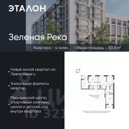 Продается квартира 156, по адресу г. Омск, ул. Волгоградская, корпус Зеленая Река, 1 очередь, корпус 7 в Зеленая Река на 9 этаже, с площадью 103.8 м2.