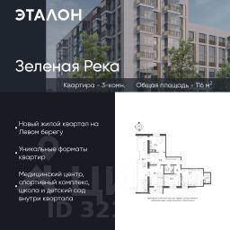 Продается квартира 233, по адресу г. Омск, ул. Волгоградская, корпус Зеленая Река, 1 очередь, корпус 7 в Зеленая Река на 8 этаже, с площадью 116 м2.