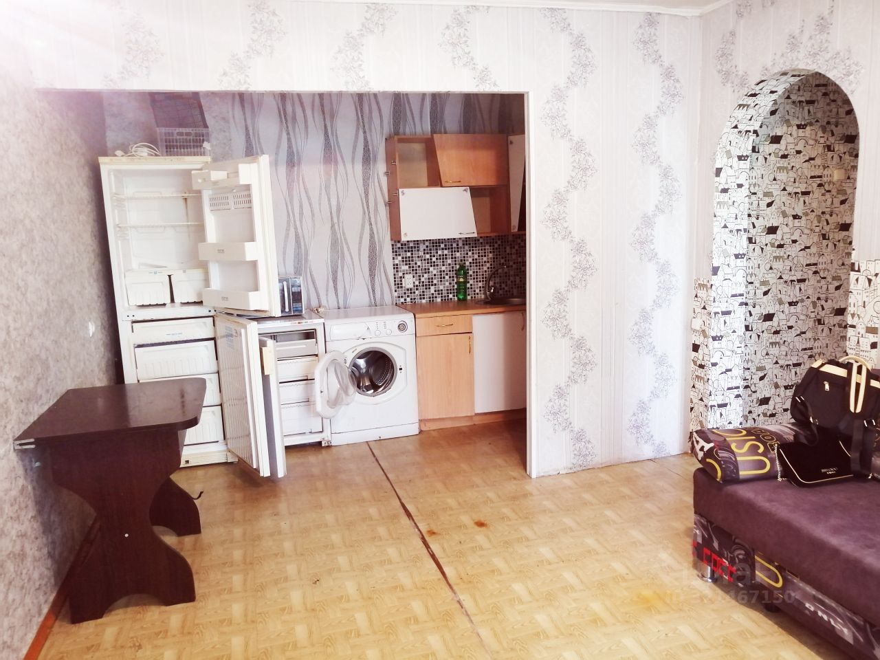 В квартире есть вся мебель и техника для проживания: холодильник, морозильная камера, стиральная машина, микроволновая печь, кухонный гарнитур, диван, шкаф-купе.