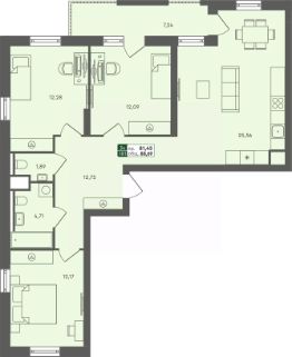 Продаётся 3-комнатная квартира в строящемся доме (ГП 2.1), срок сдачи: III-кв. 2026, общей площадью 88.69 кв.м., на 1 этаже.