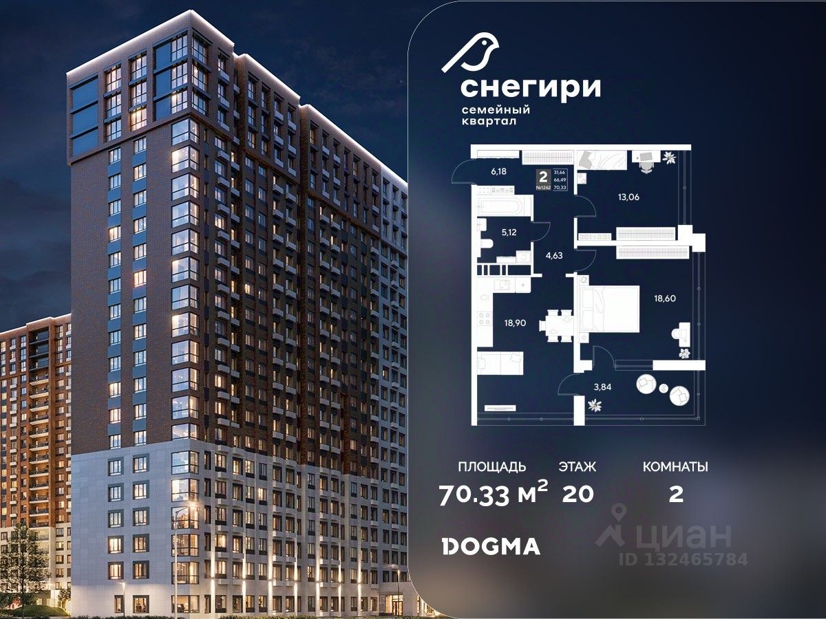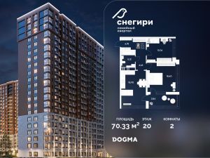 В продаже 2-комнатная квартира от застройщика DOGMA! ЖК "Снегири", г. Омск, Литер 2 Срок сдачи: (4 кв. 2027, общей площадью 70.33 кв.м., на 20 этаже.) Район для счастливой жизни